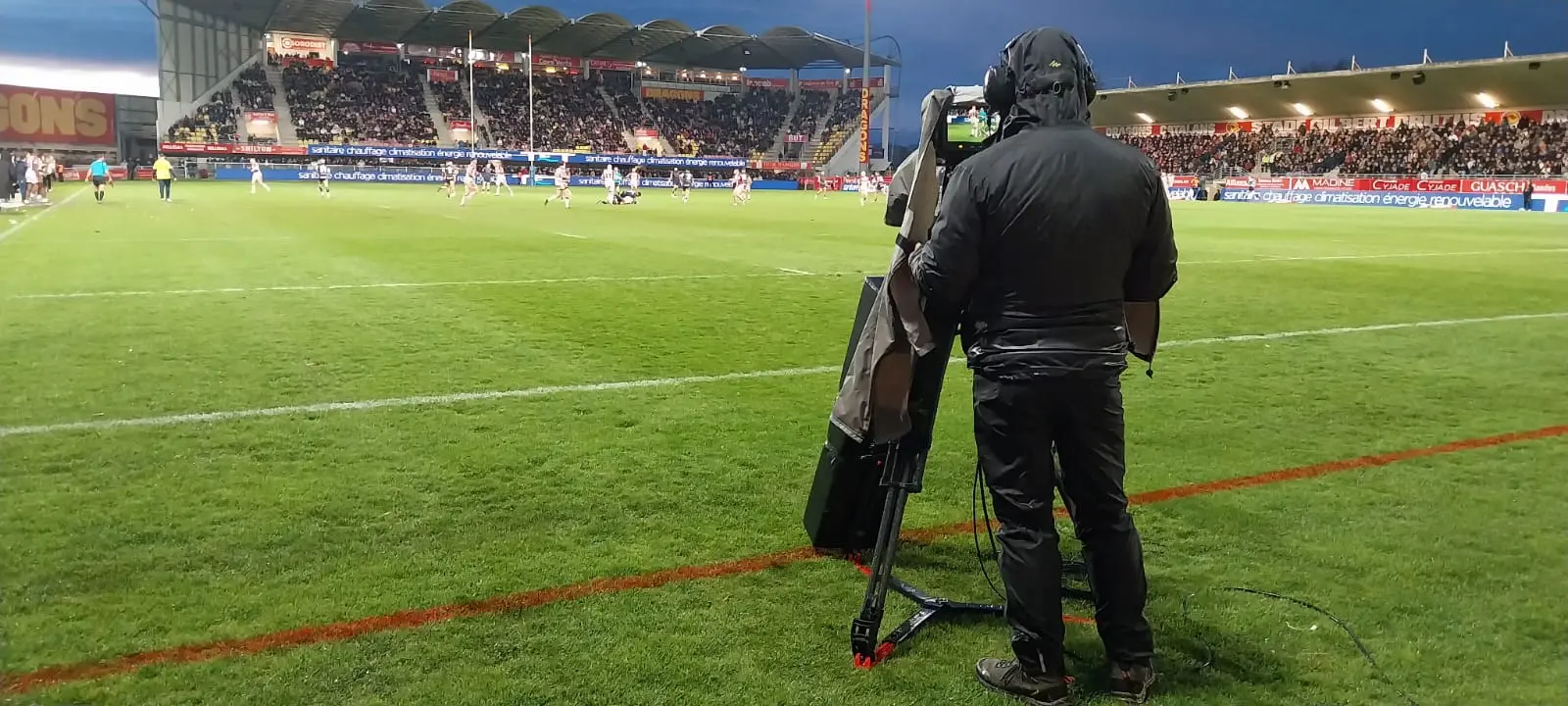 Per segon any consecutiu, Mediapro BMS va reunir un equip especialitzat de 24 professionals per a dur a terme la tasca en aquesta petita ciutat del sud de França equipats amb unitat mòbil amb 6-8 càmeres distribuïdes estratègicament pel camp, així com una unitat de control TMS (VAR) completa a càrrec del sistema de comunicacions dels àrbitres. El rugbi va ser pioner a implementar un sistema d’anàlisis (TMS, anomenat VAR en altres esports) fa més d’una dècada. A més, té un àrbitre a dins la unitat mòbil que supervisa les jugades i dona consell mèdic en cas de lesió greu. El nostre equip tècnic inclou un productor, 2 operadors de replay, un tècnic audiovisual, una taula de mescles de vídeo i 2 especialistes gràfics. Tots supervisen cada detall del procés de producció, des de la vista prèvia fins al broadcast en directe i les entrevistes després del partit, tot retransmès en directe a la plataforma de Sky Sports.